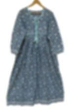 Cotton indigo blue hand block printed women's wear tier maxi dress